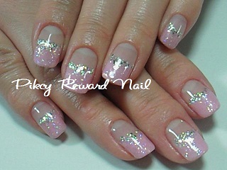 ピンクのハーフフレンチに、シルバーのラメでラインを入れました。